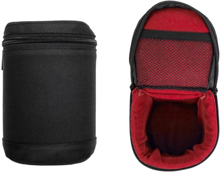 Extra védelmet biztosító vízlepergető objektív tok. Akasztóval táskánkhoz rögzíthetjük. A tetejében objektívszűrőt, memóriakártyát stb. is tárolhatunk. Fém cipzárral. A csomag tartalmaz egy objektív vég fixáló pakkot, amivel megakadályozhatjuk, hogy rázkódjon a tokban. Külső méret: M: 13x18cm Belső méret: M: 10x15cm Anyag: 300D UV álló, vízálló műanyag szöveg Így is ismerheti: objektív védőtok, objektív tok